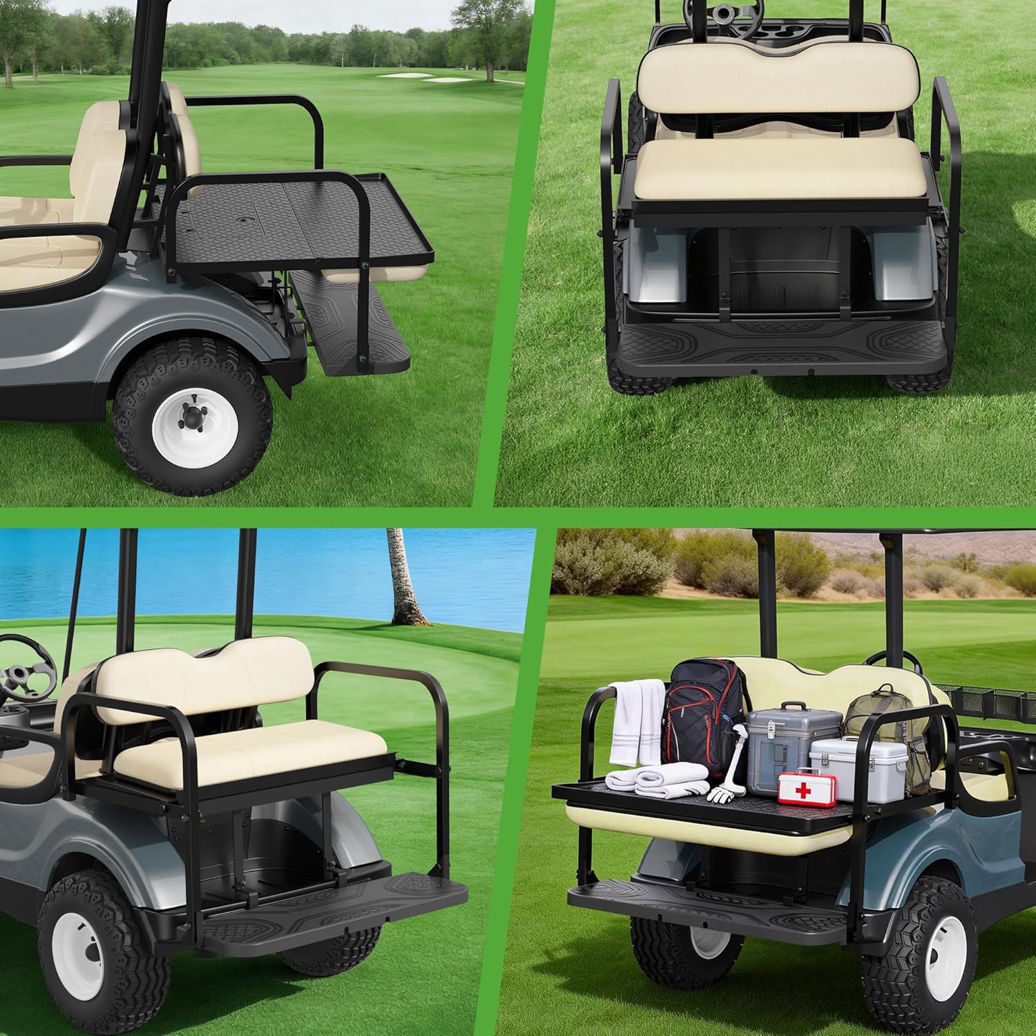 10L0L Golf Cart Rear Flip Seat for Yamaha G29 Drive 2 (2017-Up) , Heavy-Duty Alloy Steel & PE Construction, No-Drill Installation Universal Fit All Years, Non-Slip Pedals & Padded Backrest