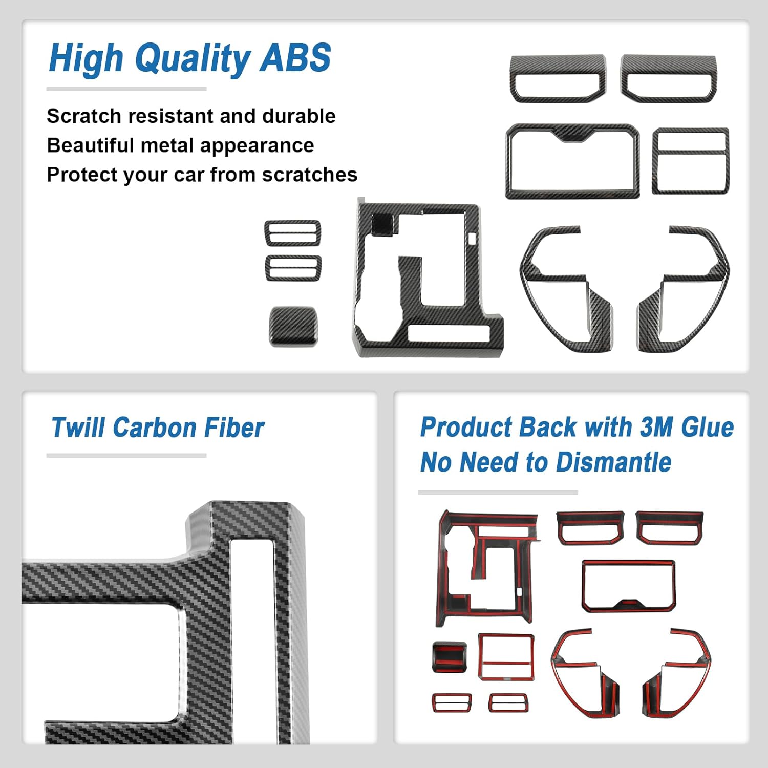Fancemot 10PCS Carbon Fiber Interior Trim Cover Decorative Kit Compatible with 2024 2025 2026 Toyota Tacoma - Console, Door Handle and Window Lift Switch Panel Cover Accessories