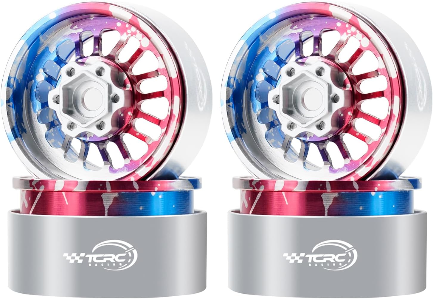 Features: Alloy construction made it more durable,Shock-proof and high crush-resistant Integrated design of UP beadlock ring and main body,no gluing The heat dissipation ability is strong,Fine workmanship and perfect style Lightweight upgrade instantly enhances overall performance in handling and durability Suitable for 1/10 Axial Wraith RR10 YETI SCX10 D90 TRAXXAS TRX4 CC01 RC Crawler Car Specifications: Wheel Size: 1.9" Material: Aluminum alloy Quantity: 4PCS Color: Blue+Pink+Purple (Splash Anodize) Thickness: 27.7mm/1.09in Outer Diameter: 55.5mm/2.18in Inner Diameter: 46.1mm/1.81in Drive Hex: 12mm Offset: -0.85mm(Negative) Each Wheel Weight: 68g/pc Package Included: 4PCS * 1.9 Inch Wheel Hubs