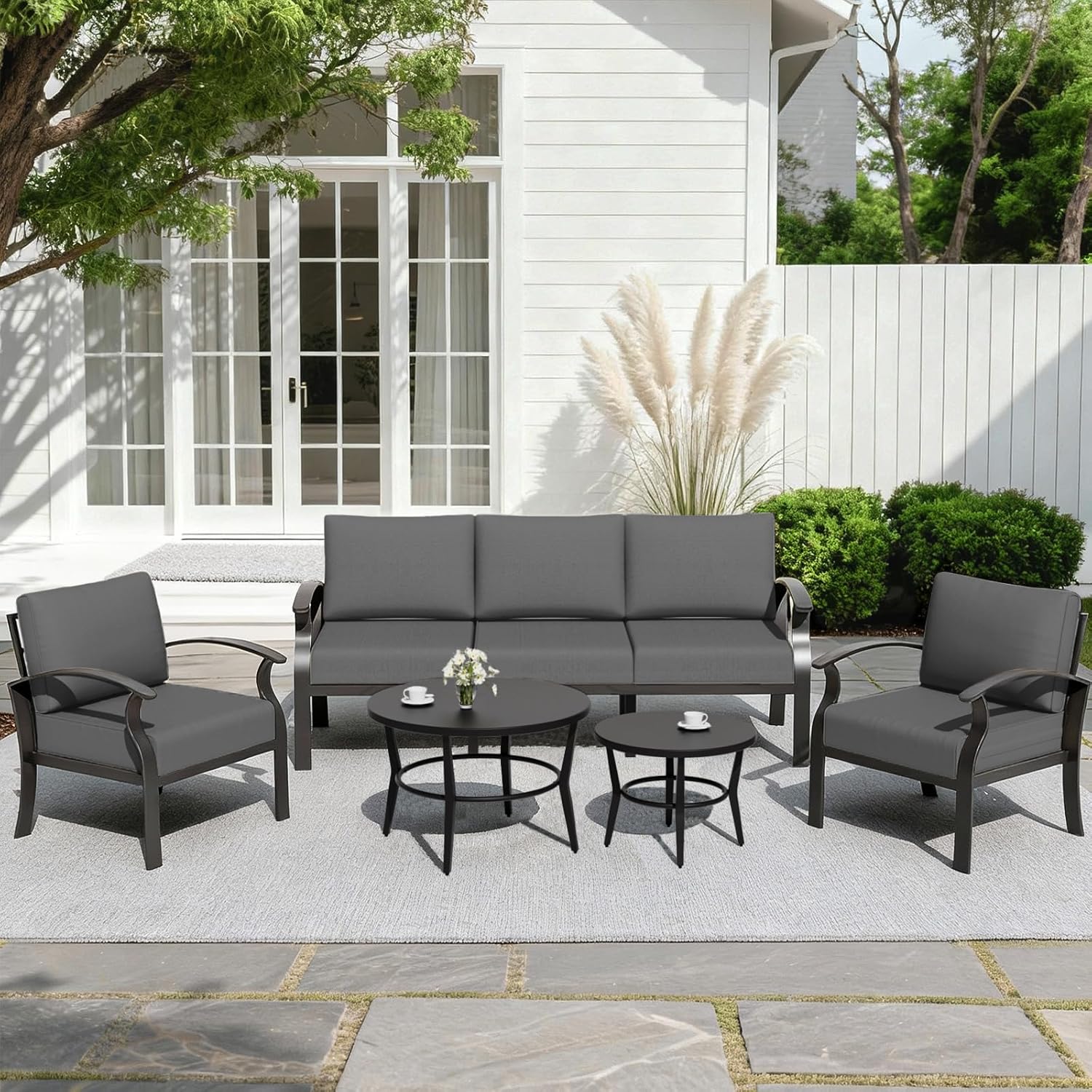 Upgraded All-Aluminum Frame - Made of premium aluminum, ALAULM 7 piece metal outdoor furniture is not easy to rust, strong and durable. In addition, it is suitable for all kinds of weather conditions. When you sit with your family or good friends, the red flame of the dancing hearth can add some fun and joy to you.