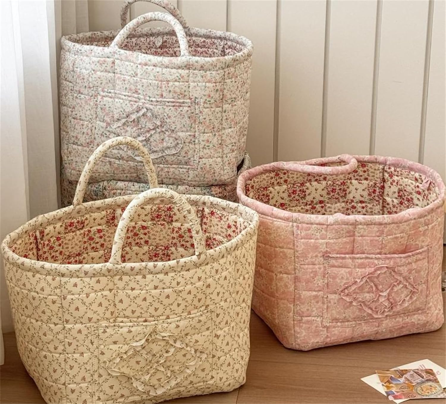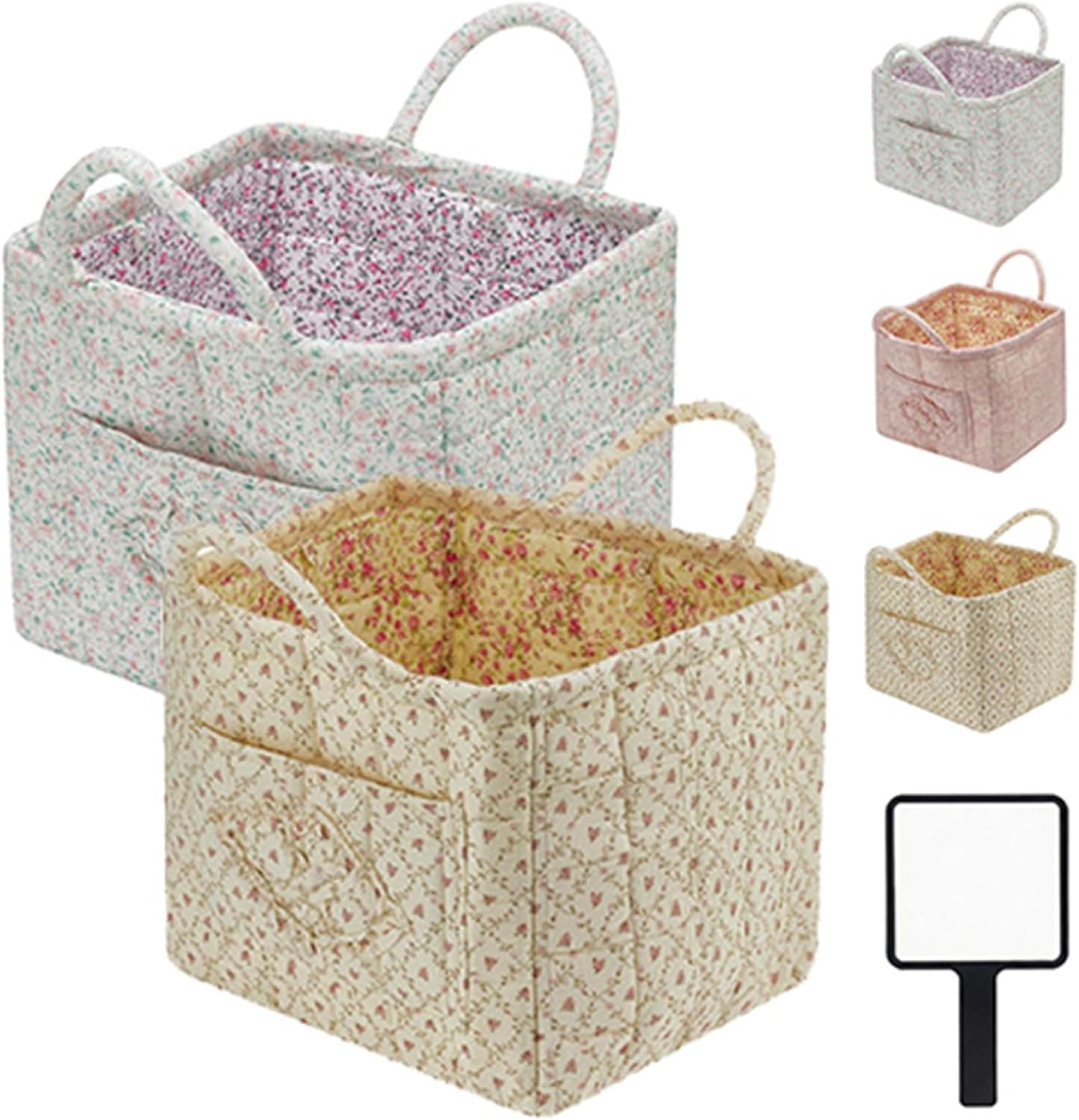 Specifications: Name: Boho-Chic Quilted Floral Storage Basket Material: Cloth Size: 9.8*12.6*10.2 Inches Weight: 0.41lb Package Includes: 2/4 PCS* Boho-Chic Quilted Floral Storage Basket 1 PCS* Handheld Makeup Mirror Note: 1.Due to distinct lighting and screen settings, the item color may be slightly distinct from the picture 2.Due to distinct manual measurements, please allow a 1-2cm distinct in size