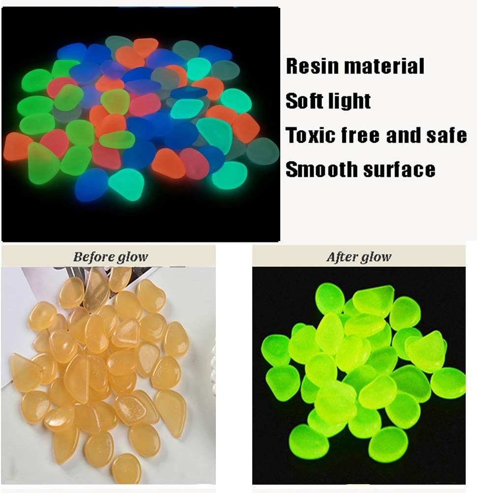 ♥ 100pcs/200pcs/300pcs/400pcs/500pcs Multicolor Glowing Stones OutdoorMulticolor light can create a dreamy and romantic atmosphere.♥ Enjoy the DIY family time.Glowing rocks for garden,driveway,water fish tank gravel,lawn yard, aquarium, walkway and so on.♥ How to Use① Remove the package and put the pebbles under the sun or light (2-4h).② Make sure that each pebble absorb light,it will glow in the dark and can be reusable.♥ SpecificationMaterial: ResinSize: Approx. 2-3cmPackage Include100pcs/200pcs/300pcs/400pcs/500pcs x Glowing Pebbles♥ AFTER-SERVICE GUARANTEE* Speedy Customer Service With Satisfactory and Patient Answer in 24 Hours, 90 Days Unconditionally Exchange or Money Back Warranty.