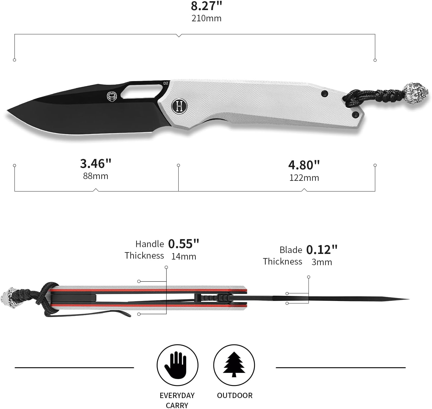 With a slightly recurved blade ideal for multitasking, the Holtzman Pocket Knife offers amazing slicing and piercing capabilities good for tackling tough jobs. The same great, useful, powerful blade shape with fierce design offer users consistency and dependability. The pocket knife handle is enhanced to provide Anti-slip & easy grip, it is designed for functionality. The sharpening stone will make sure your blade is always razor sharp and the carrying case will keep your EDC knife safe and always at hand.