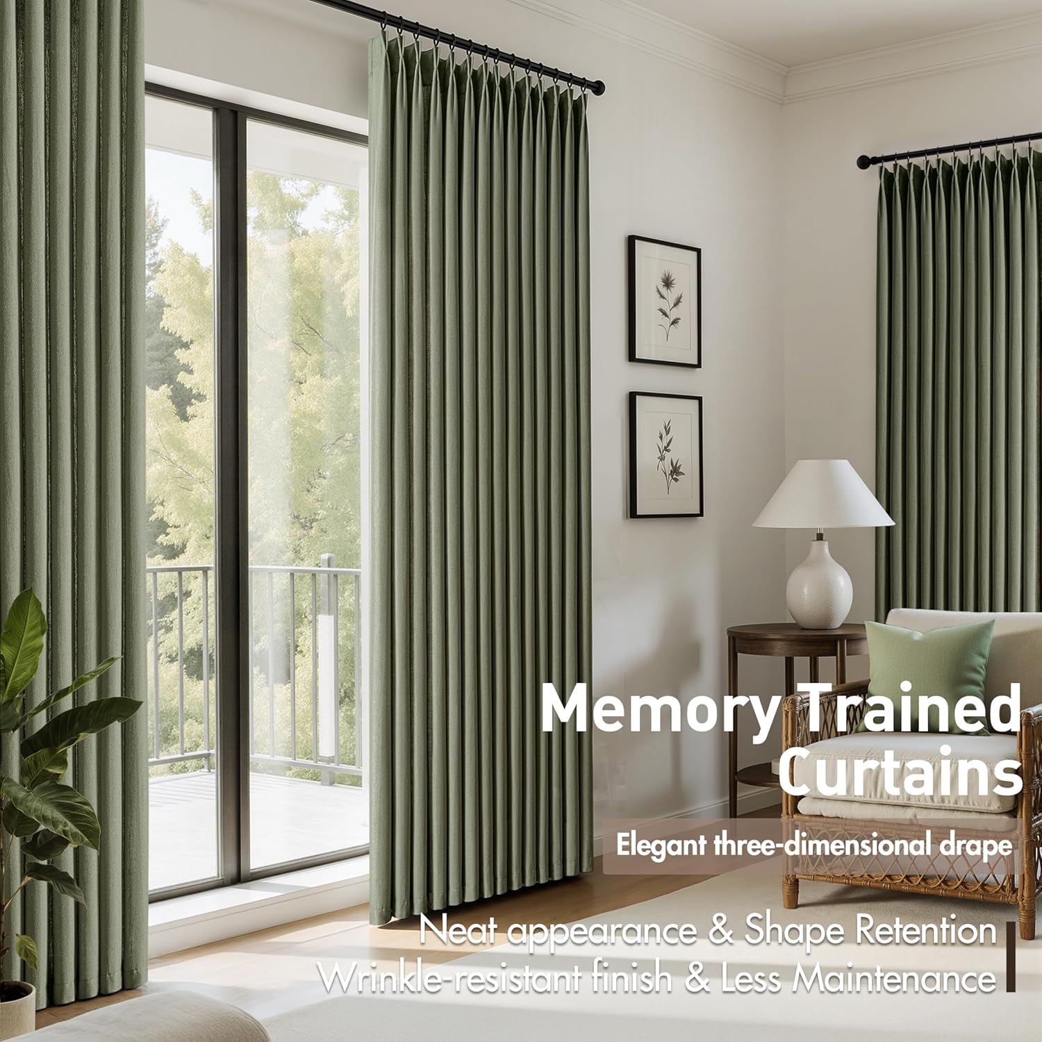 Memory-Formed Pleated Curtains: These drapes are designed with a permanent pinch pleat structure, where the chosen width is the actual finished size after pleating. Unlike curtains with grommets, which list the unpleated fabric width, pinch pleat curtains offer a more tailored, full appearance that requires about 1.5 times the fabric. Though they may be priced slightly higher, they provide an elegant, ready-to-hang look without additional setup.Memory-Reshaped Drapes: These curtains undergo a high-heat treatment to establish sharp, dimensional pleats that enhance any room’s elegance. This process ensures that the shape remains intact after repeated washes. While the curtains may have minor wrinkles from packaging, a quick steaming or light ironing will restore their smooth finish. The weighted bottoms keep the fabric taut and in place.Privacy and Light Filtering Draperies: These robust linen curtains are excellent for diffusing direct sunlight while providing privacy. They obscure the view from the outside, offering a secluded space while still allowing some natural light to filter in. Designed to be both functional and decorative, these pleated drapes are perfect for areas where light control, privacy, and an elegant touch are needed.Linen-Like Fabric Blend: Made from a fabric with a linen texture, these curtains provide a natural and organic feel that complements a variety of interior styles. Whether your home has a contemporary, rustic, classic, or coastal vibe, the subtle woven pattern introduces visual interest and refinement without overwhelming the space. Due to the linen content, tiny natural flecks may be visible, contributing to the authentic look. For a smooth, spotless finish, a pure white option is also available.Cortinas con Pliegues Memorizados: Estas cortinas están diseñadas con una estructura de pliegue permanente, donde el ancho seleccionado es el tamaño final real después de hacer los pliegues. A diferencia de las cortinas con ojales, que indican el ancho del tejido sin pliegues, las cortinas con pliegues pinchadas ofrecen una apariencia más estructurada y completa que requiere aproximadamente 1.5 veces más tela. Aunque su precio pueda ser ligeramente más alto, proporcionan un aspecto elegante y listo para colgar sin necesidad de ajustes adicionales.Cortinas con Forma Memorizada: Estas cortinas pasan por un tratamiento de alta temperatura para establecer pliegues nítidos y dimensionales que mejoran la elegancia de cualquier habitación. Este proceso asegura que la forma se mantenga intacta incluso después de múltiples lavados. Aunque las cortinas puedan tener algunas arrugas del embalaje, un rápido vapor o una planchada ligera devolverán su acabado suave. Los pesos en la parte inferior mantienen la tela estirada y en su lugar.Cortinas de Privacidad y Filtrado de Luz: Estas cortinas de lino grueso son excelentes para difundir la luz directa del sol mientras brindan privacidad. Ocultan la vista desde el exterior, ofreciendo un espacio aislado mientras permiten que entre algo de luz natural. Diseñadas para ser tanto funcionales como decorativas, estas cortinas con pliegues son perfectas para áreas donde se necesita controlar la luz, garantizar privacidad y añadir un toque elegante.Mezcla de Tela Tipo Lino: Hechas con una tela de textura similar al lino, estas cortinas ofrecen una sensación natural y orgánica que complementa una variedad de estilos interiores. Ya sea que tu hogar tenga un estilo moderno, rústico, clásico o costero, el patrón sutilmente tejido introduce interés visual y refinamiento sin abrumar el espacio. Debido al contenido de lino, pueden aparecer pequeñas manchas naturales, lo que contribuye al aspecto auténtico. Para un acabado suave y sin manchas, también está disponible una opción en blanco puro.