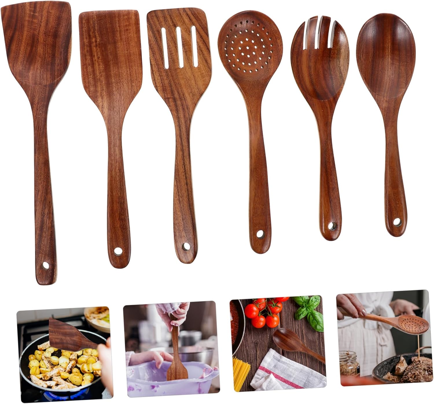 Package Include 1 x Turner 1 x Square Bent Shovel 1 x Hollow Square Shovel 1 x Colander 1 x Salad Spoon 1 x Salad Fork Characteristics - Salad Spoon Size: About 26.00X7.00X2.30cm/10.22X2.75X0.90in serving utensils - Turner Size: About 33.50X8.50X1.50cm/13.17X3.34X0.59in wooden spoon for cooking - Colander Size: About 28.50X7.30X2.80cm/11.20X2.87X1.10in cooking spoon - Material: Teakwood cooking utensil -Product Info:Teak kitchenware set - Color: Assorted Color cooking utensil spoon - Square Bent Shovel Size: About 30.50X7.30X2.00cm/11.99X2.87X0.79in kitchen tool - Salad Fork Size: About 26.30X7.00X2.50cm/10.34X2.75X0.98in wood spoons for cooking - Hollow Square Shovel Size: About 30.50X7.50X2.00cm/11.99X2.95X0.79in spurdle for cooking - You can give it to your friends as a housewarming gift, they will like it kitchen spoons for cooking. - The edges are smooth and round, and will not scratch the surface of your pot wooden spoons for cooking. - This shovel is smooth and doesn't hurt the pot, can use it with confidence spoon for cooking. - They are safe to use for any type of food - No breaking or bending. No melting cooking wooden spoons. - Hanging hole design is convenient for storage. And it is easy to clean and easy to use kitchen wooden spoons for cooking.Goods Informationserving utensils If you complete functional of kitchen tools, why not take at our new products? This cooking tools are made of natural and safe wood material, light weight, easy to use, not easy to deform or damage