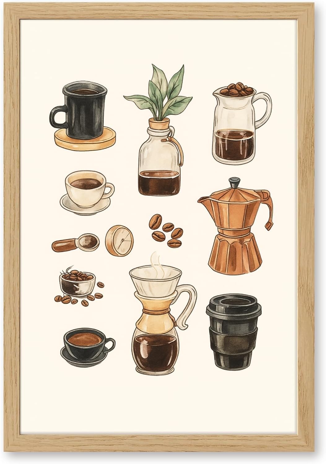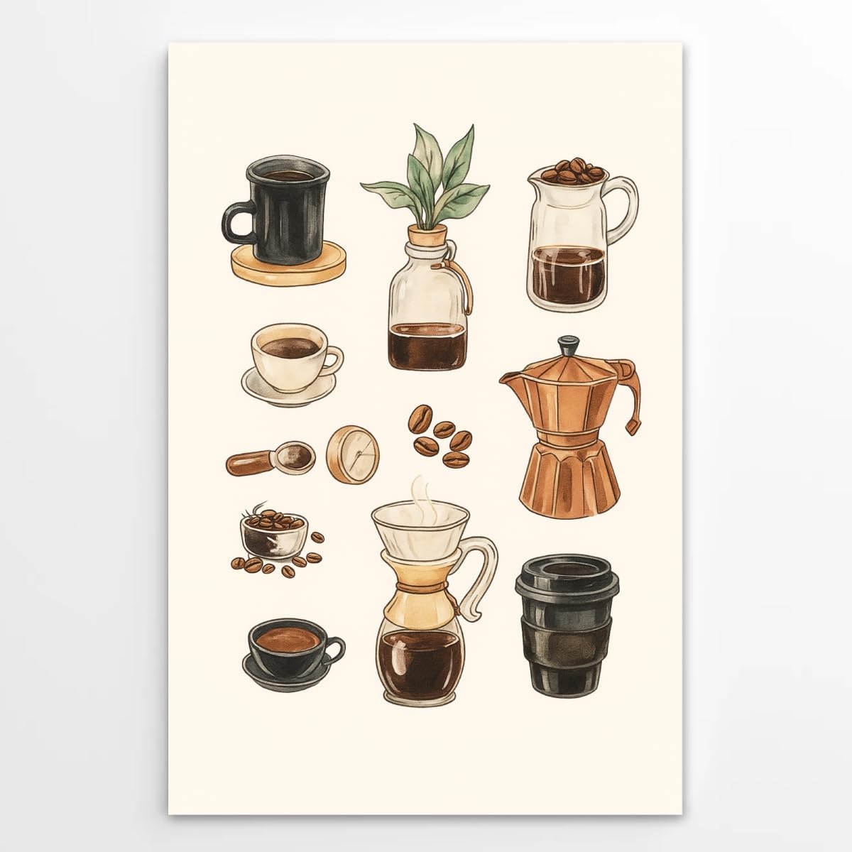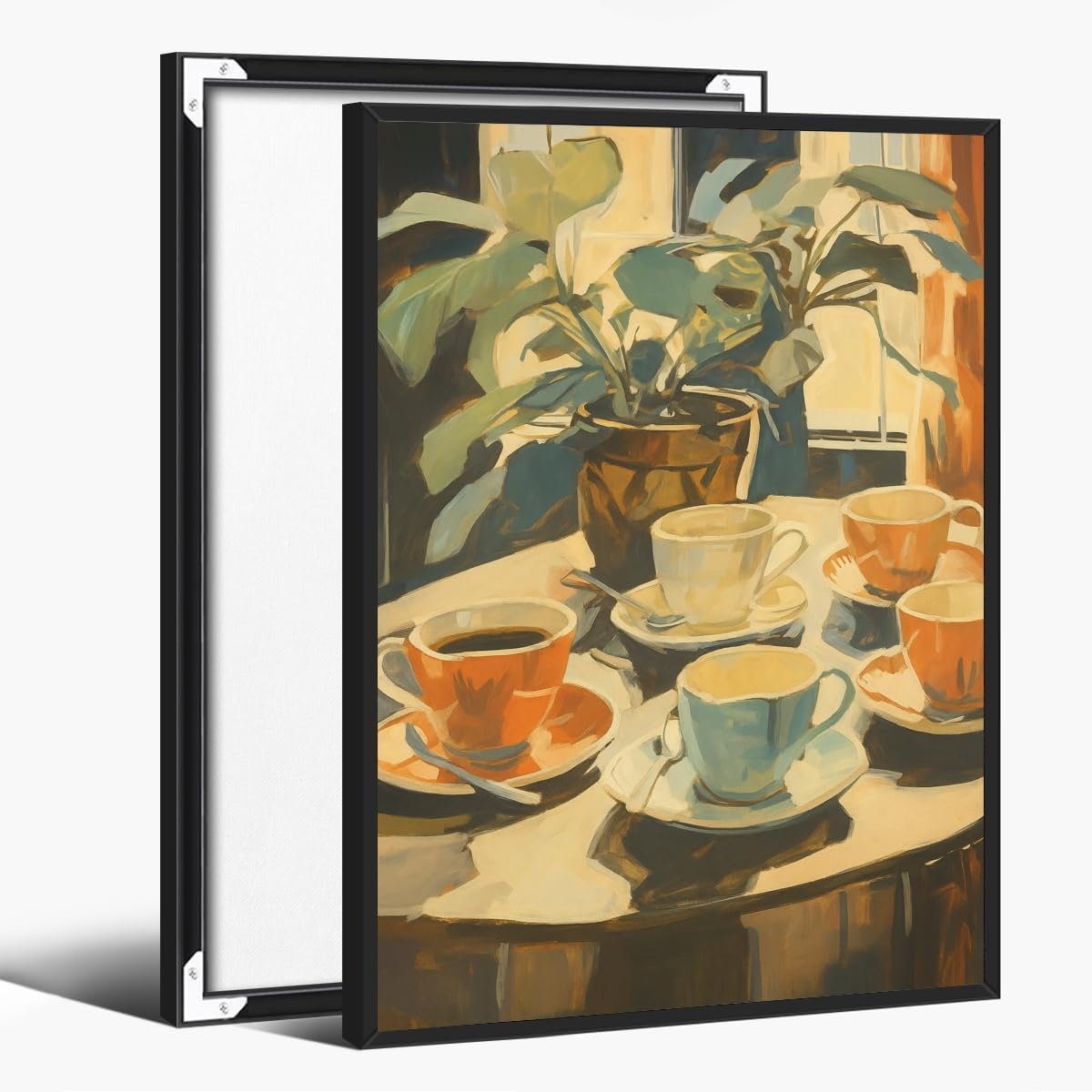 Ignite Inspiration with Timeless Wall Art ① Bring the charm of a quiet morning into your space with this Retro Coffee and Plant Wall Art. This vintage-inspired oil painting poster showcases an inviting tabletop scene. ② Whether displayed in a kitchen, reading nook, or cozy corner of your home, it adds character and warmth with a subtle artistic touch. offering long-lasting charm for coffee lovers and interior design enthusiasts alike. Frame to Choose: ① Canvas Roll - Unframed ② Built in wooden frame ③ Black PVC frame ④ Golden PVC frame ⑤ Wood color PVC frame ⑥ Outer black aluminum frameMultiple sizes ① 8x12 inches ② 12x18 inches ③ 16x24 inches ④ 20x30 inches ⑤ 24x36 inchesFor unframed posters, we leave a 1 cm blank around the edges, making it easy to trim and fit into your frame if needed