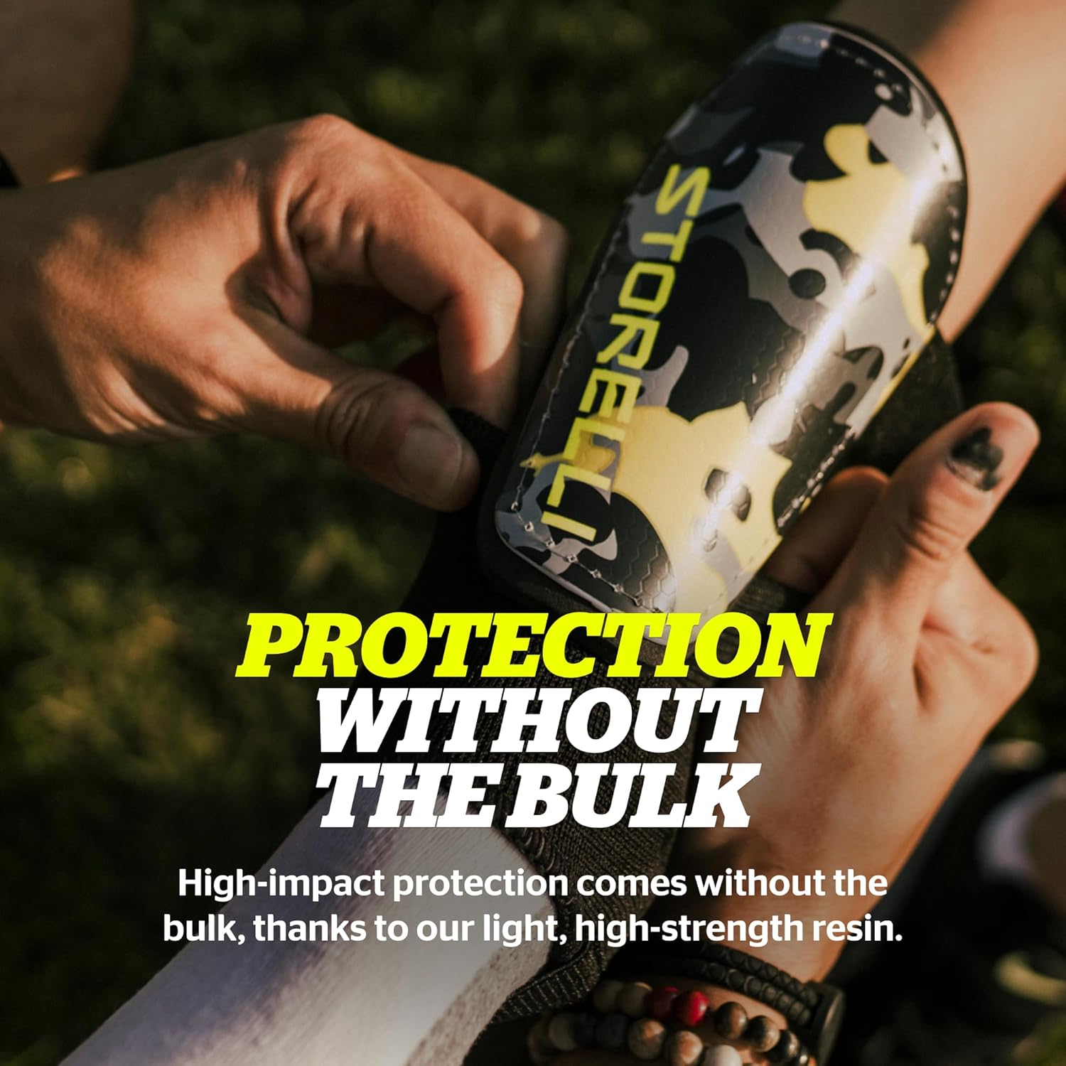 Step onto the field with confidence using our Slip-In shin guards. Crafted with a durable yet flexible shell, these shin guards shield you from the toughest challenges. The lightweight, high-strength resin protects you from high impacts without adding extra weight. These shin guards, featuring 8mm of molded padding, are crafted for optimal comfort and contour seamlessly to your shin. Integrated air channels let your skin breathe, ensuring you stay cool and can focus entirely on the game. The unique asymmetric design maximizes protection while maintaining a sleek profile. Designed to complement Storelli leg guards (sold separately), these shin guards are a must-have soccer accessory for players across all skill levels. These shin guards cater to male and female soccer enthusiasts, from youth to adults. Elevate your game while ensuring safety with these premium shin guards!