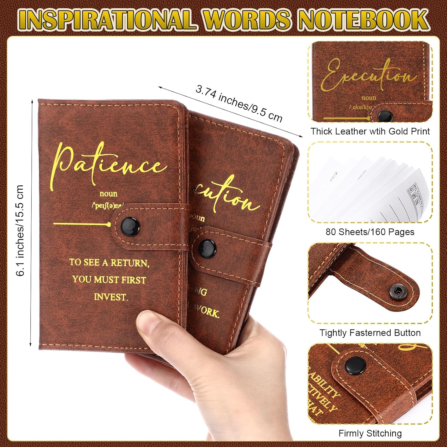 Features: These small notebook journal for work business travel school men and women Ideal for people in various fields such as office, school, home, and more, these little notebooks are excellent for journaling or keeping track of work life, grocery lists, quotes, poetry, and more Specifications: Notebook: Material: PU leather and paper Color: brown Size: 6.1 x 3.74 inches/ 15.5 x 9.5 cm Pen: Material: plastic and ink Color: brown Size: 5.51 inches/ 14 cm Package includes: 20 x Inspirational gift sets Notes: Manual measurement, please allow slight errors on size. The color may exist a slight difference due to different screen displays.