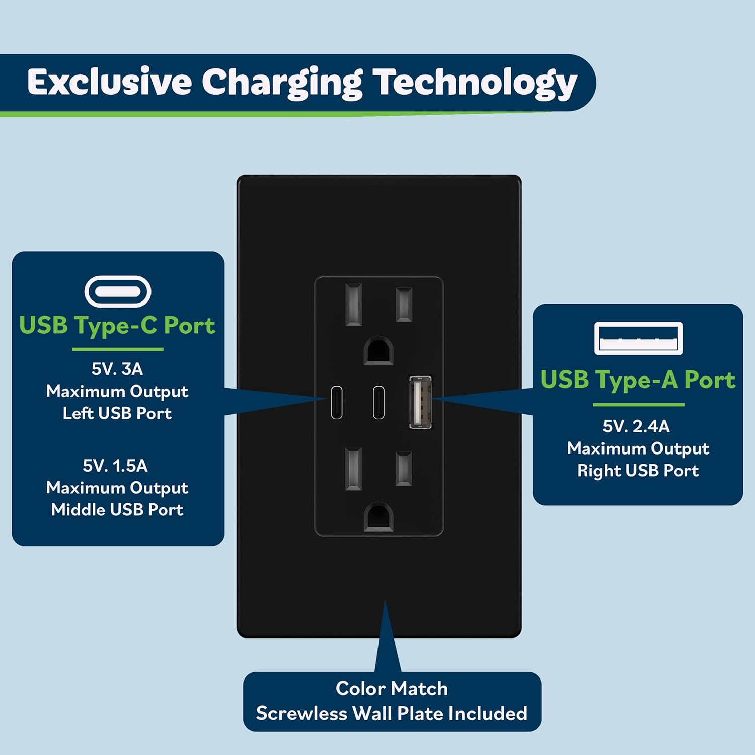 | Item Type Name | TOPGREENER 5.8A Ultra High Speed USB Type-C/A Combo Outlet, 15A Tamper-Resistant Receptacle, Compatible with iPhone 11 Pro/11/XS/MAX/XR/X, Samsung Note S9/S8/S7 & More, UL Listed, TU21558AC-BK, Black |