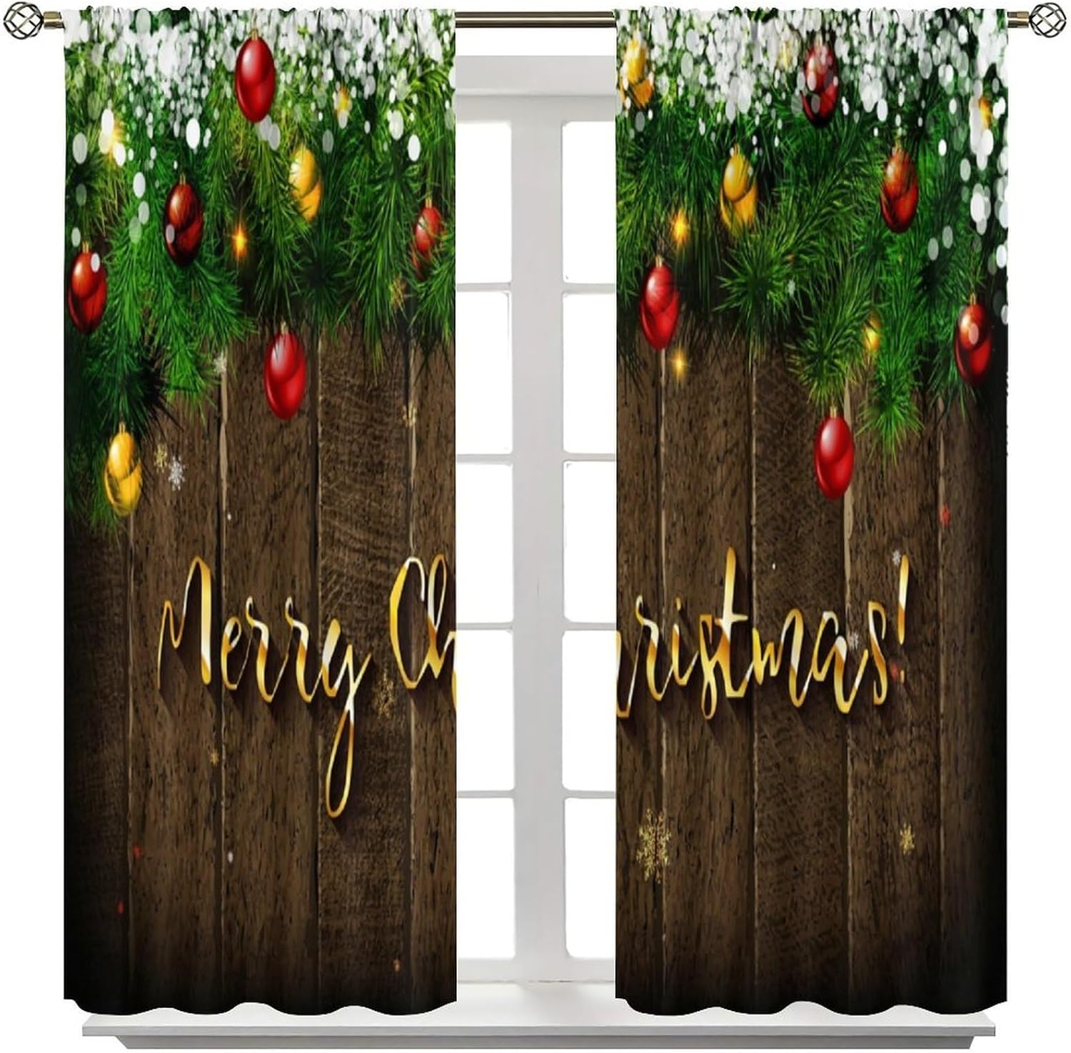 Vintage Merry Christmas Blackout Curtain Holiday's Looking Christmas Tree Branches Decorated for Home Kitchen Livingroom Coffee Room Window Drapes 2Panel 42" W X 45" L