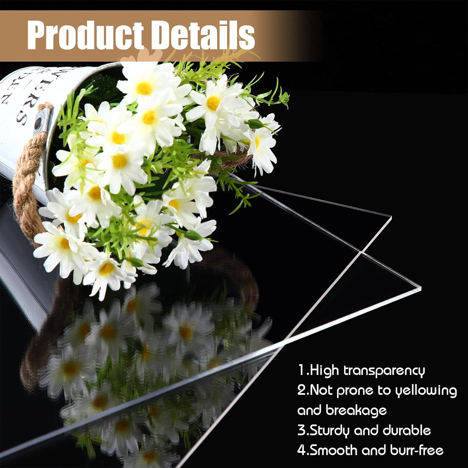 Features: You can encourage you to create beautiful and novelty crafts with our acrylic panels, which can develop their imagination and creativity, and bring them a sense of achievement. You can give the blank acrylic signs to your family members, friend, relatives, colleagues and neighbors who love crafts making, and they will be happy with their fine workmanship and practical functions. Specifications: Material: acrylic Main color: clear Size: about 12 x 16 inches/ 30 x 40 cm, about 1/8 inch/ 0.3 cm in thickness Package includes: 5 x Clear acrylic sheets Notes: Manual measurement, please allow slight errors on size. The color may exist a slight difference due to different screen displays.